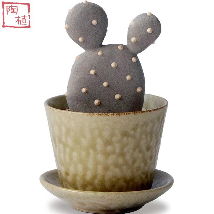 陶植 ウチワサボテン 陶器のサボテン 益子焼3号鉢 受け皿セット おしゃれな インテリア オブジェ かわいい 水のいらない観葉植物 手作り 新生活 プレゼント こうのとり 通販 Yahoo ショッピング